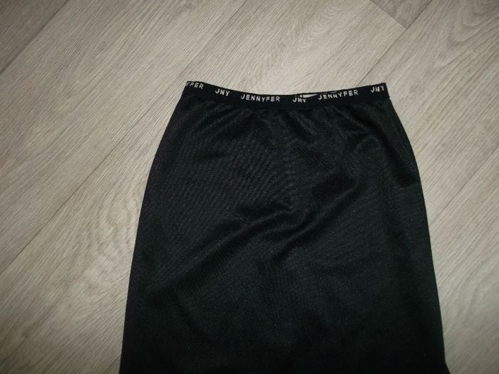 Jupe de marque JENNYFER, taille 36/38 (plus d'étiquettes), longue de couleur noire en matière extensible, ouverte sur le bas sur les 2 côtés, taille élastiquée également avec la marque tout autour en blanc. TBE Tour de taille à plat non tendue : 29 cms Longueur : 91 cms Hauteur ouvertures : 50 cms