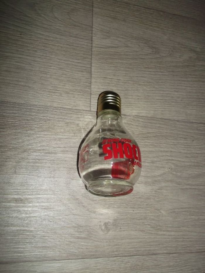 Bouteille en forme d'ampoule vide pour collection STRONG CIDER SHOCK contenance de 250 ml. TBE