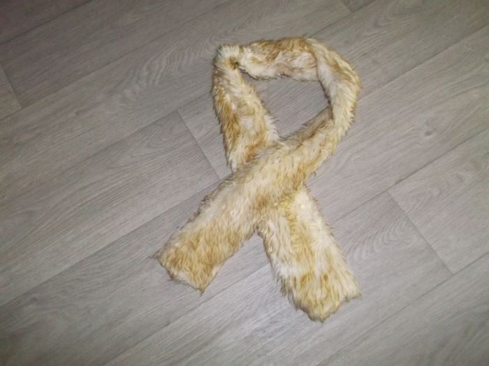Echarpe en fausse fourrure de couleur beige et marron roux . TBE Longueur : 146 cms Largeur : 10 cms