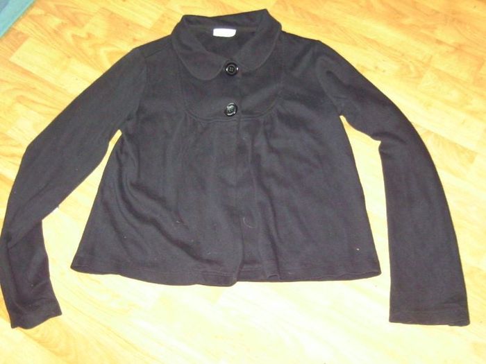 Veste courte de marque PIMKIE, taille S en coton épais style sweat de couleur noire, courte, se fermant uniquement sur le haut par 2 boutons. TBE Epaule à épaule : 37 cms Aisselle à aisselle : 47 cms Longueur : 54 cms