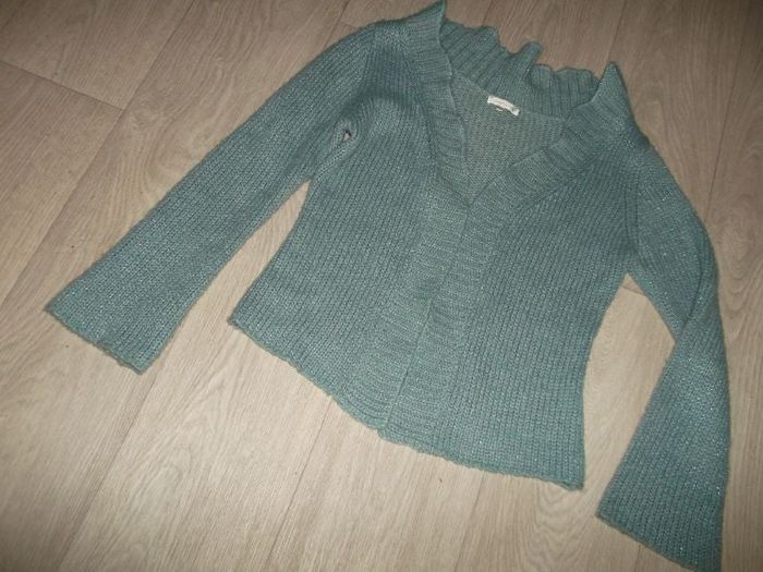 Gilet de marque GOOD LOOK, en laine et acrylique de couleur bleu outremer avec des petits filaments brillants bleus, taille unique donc 36/38 (voir mesures) . Très doux et chic, maille côtelée sur le devant et le col . NEUF Epaule à épaule : 42 cms Aisselle à aisselle : 50 cms Longueur : 52 cms