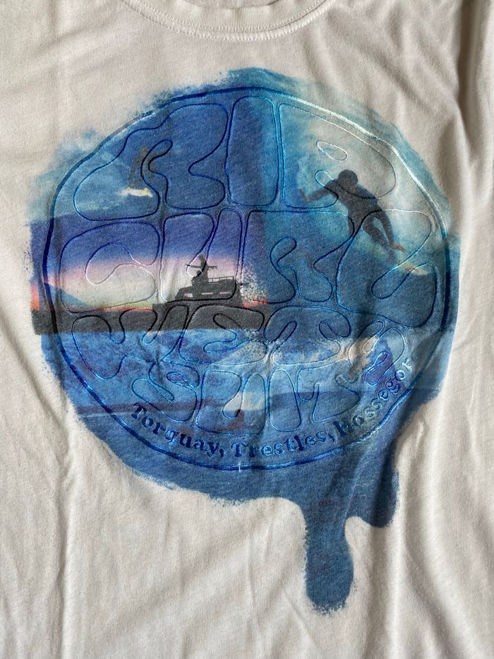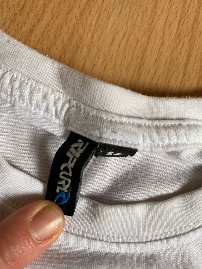 Beau T-shirt blanc à manches courtes de marque RIP CURL pour garçon T. 12 ans/152 cm, en polyester et coton, en très bon état.