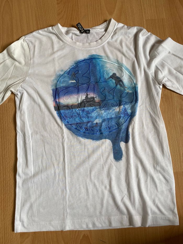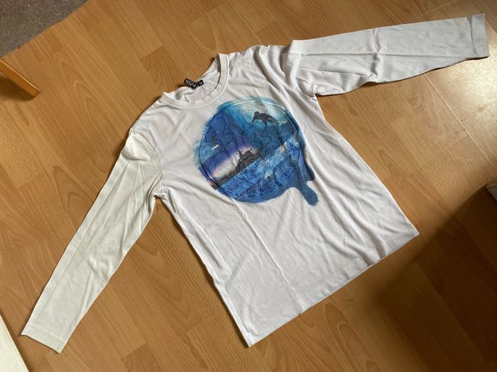 Beau T-shirt blanc ML T. 12 ans/152 cm garçon TBE - photo numéro 1
