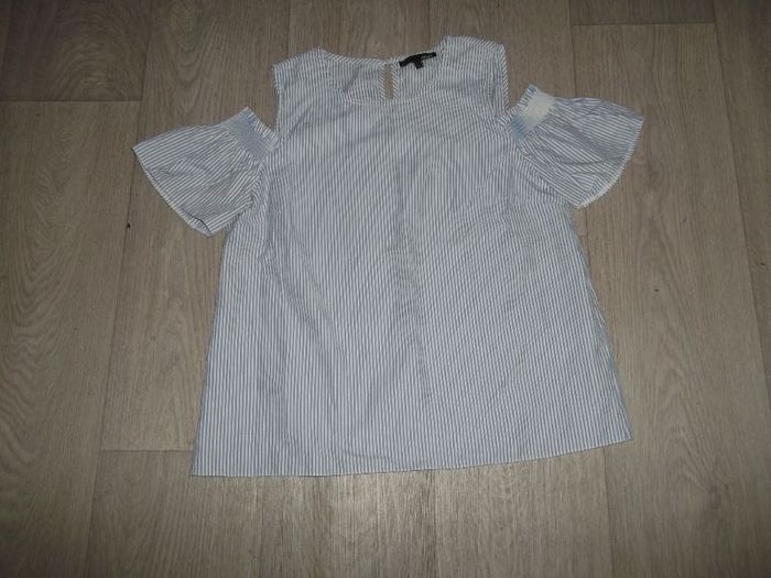 Chemisier ETAM bleu et blanc épaules dénudées taille 36 TBE
