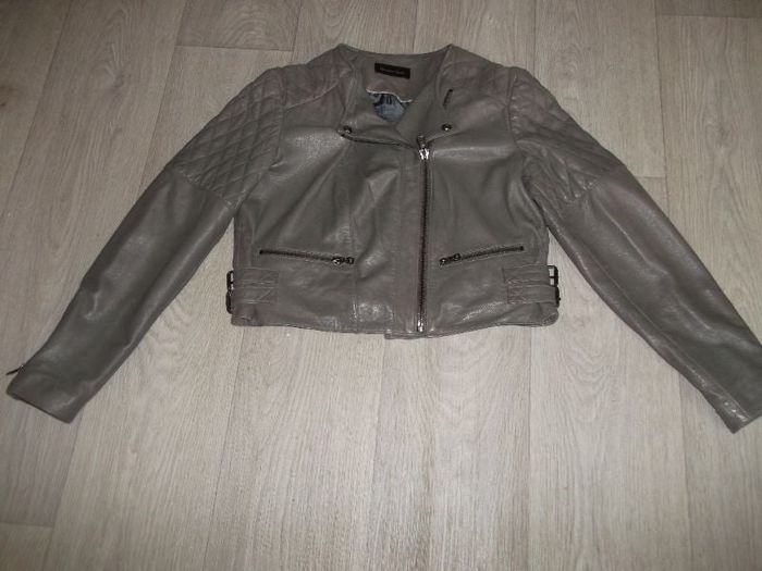 Blouson MASSIMO DUTTI cuir gris matelassé par endroits 38/40 TBE