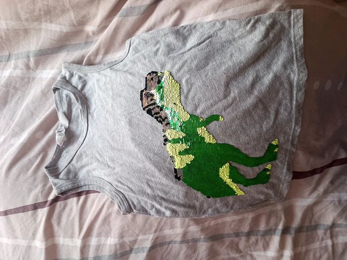 Débardeur gris avec sequins magiques. Taille 5 ans. Porté mais très bon état