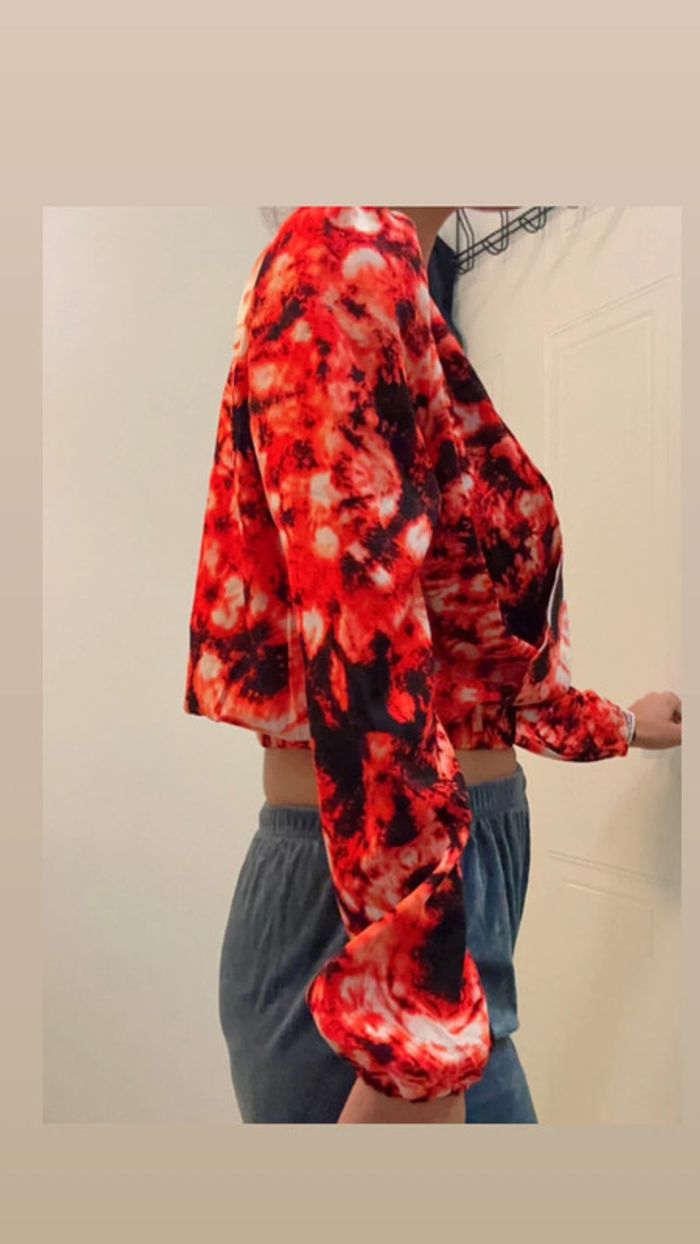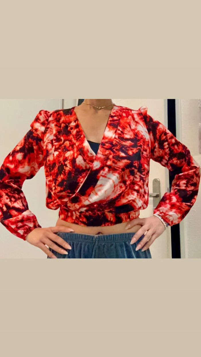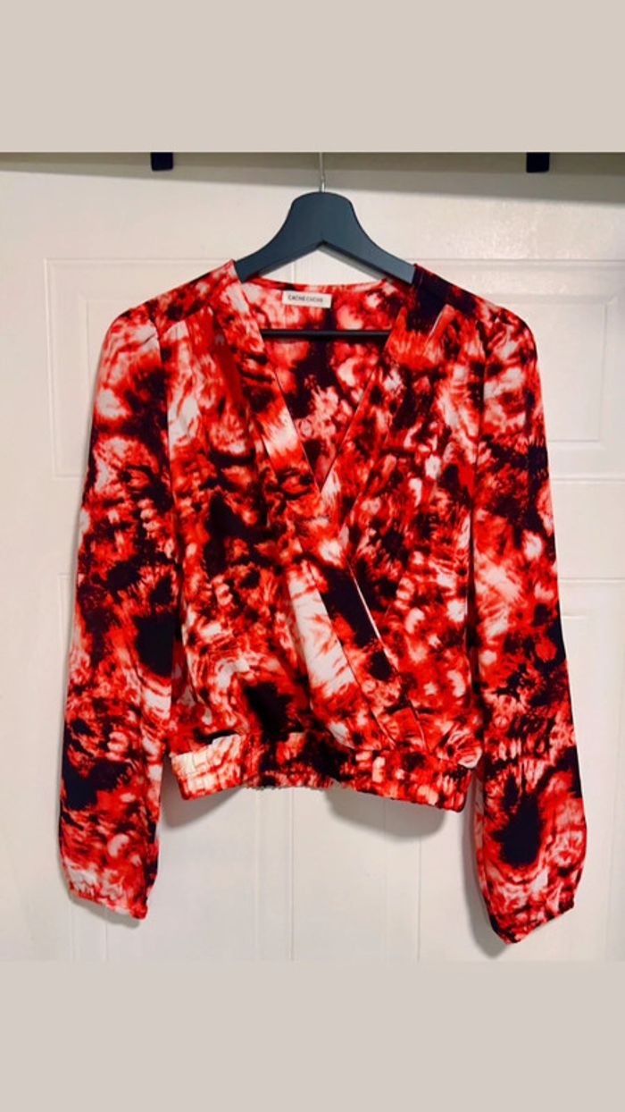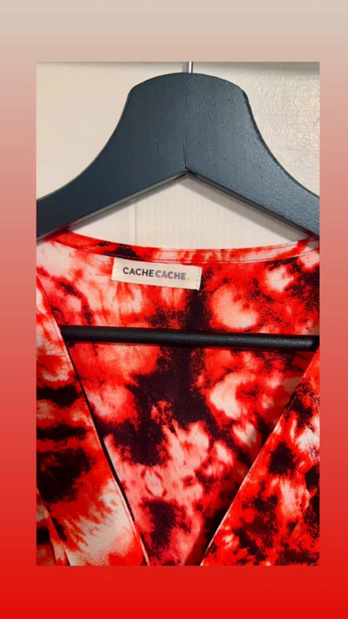 Top Rouge et Noir Court Manches Longues Cache Cache Taille M Neuf - photo numéro 6