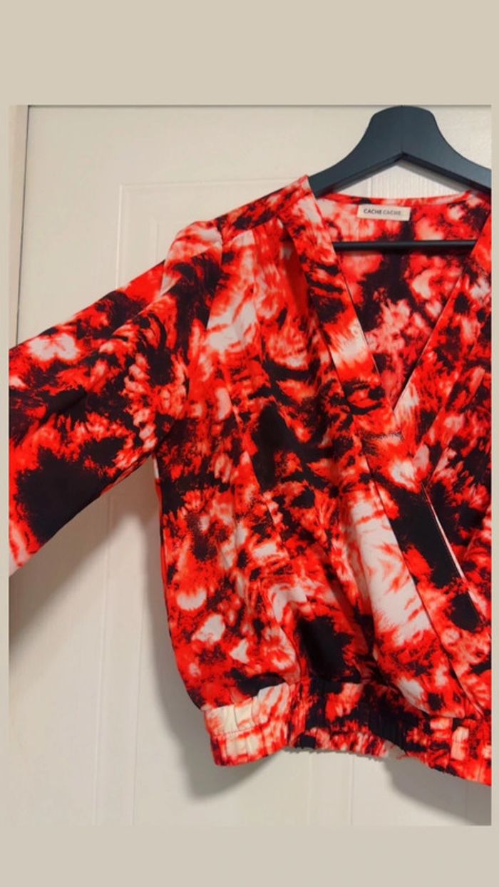 Top Rouge et Noir Court Manches Longues Cache Cache Taille M Neuf - photo numéro 5