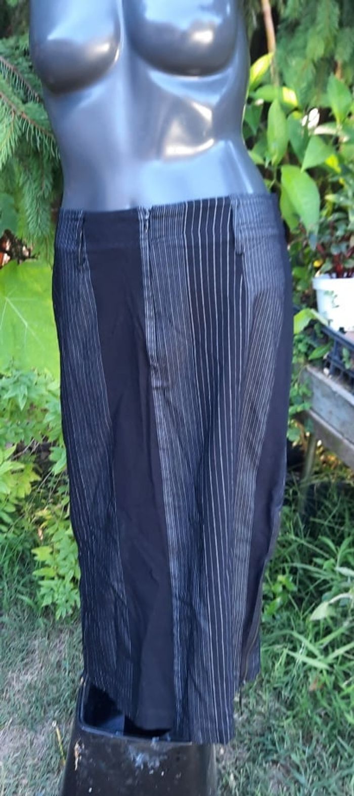 Jupe tube noire à rayures blanches, fermetures éclairs coté droit et coté gauche. Très bon état