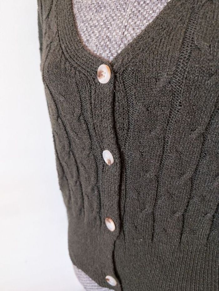 Gilet en tricot Couleur kakie avec bouton beige Taille S Très bon état
