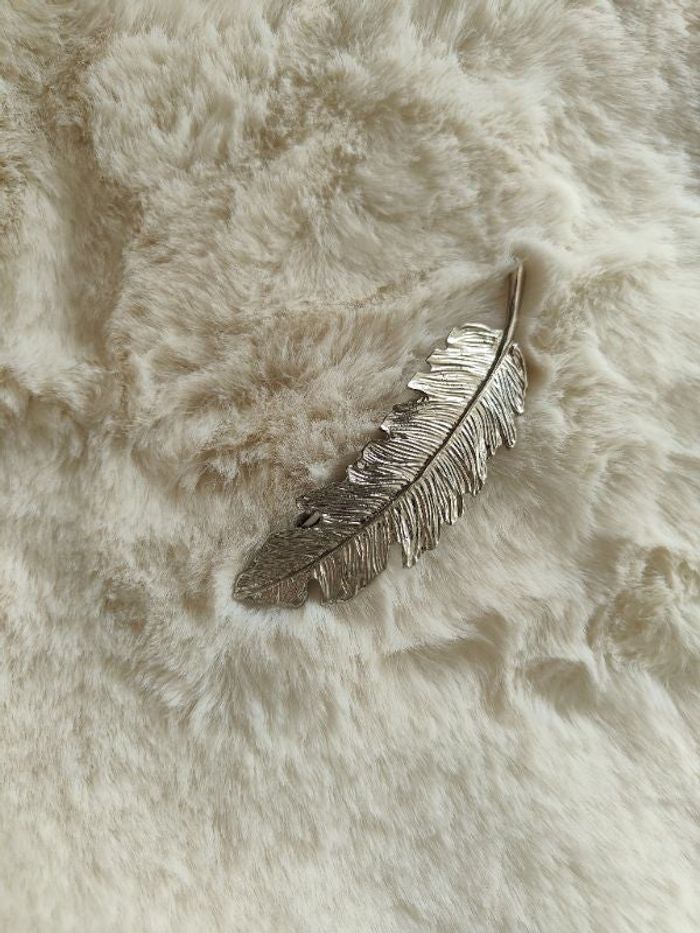 Pince à cheveux en forme de plume Couleur argenté Très bon état