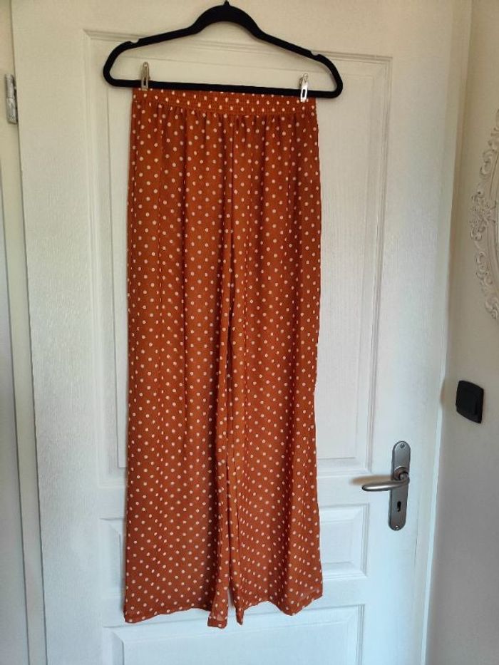 Pantalon de plage Large fluide Orange brique avec motifs pois Transparence Table M De la marque unique 21( acheter sur Asos) Neuf avec étiquette Style rétro #pantalon #asos #unique21