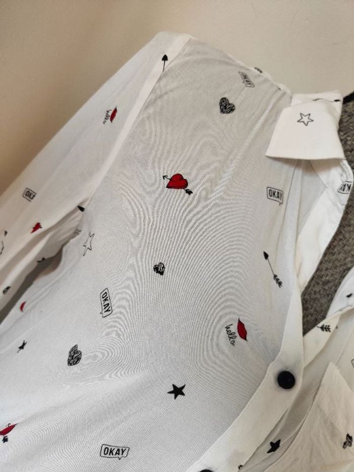 Chemise fluide blanc avec imprimé rétro coeur flèche étoiles ... Taille XS De la marque Reitmans #reitmans #chemise