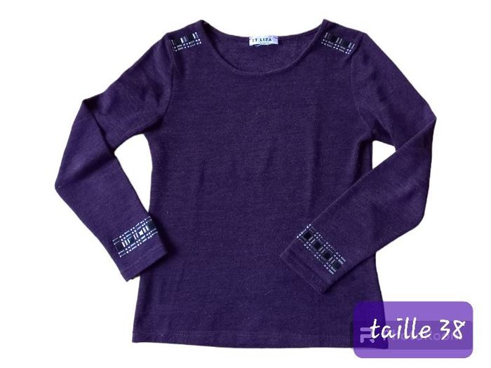 Pull chic et habillé taille 1 couleur prune Très belles finitions Création française Article de qualité Marque Et liza #nath62278femme38 #pull38 #pullfemme38