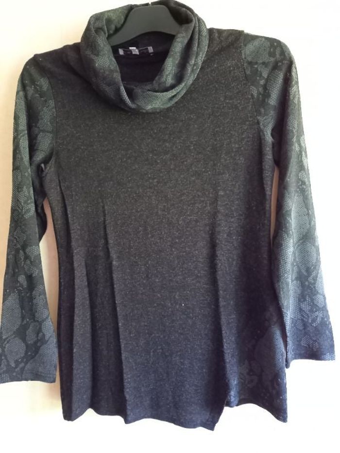 Jolie tunique taille 1 marque Gérard matel Avec un col boule et des finitions grises légèrement transparentes ce qui fait tout le chic et l'originalité de cette tunique #nath62278femme38 #tuniquefemme38