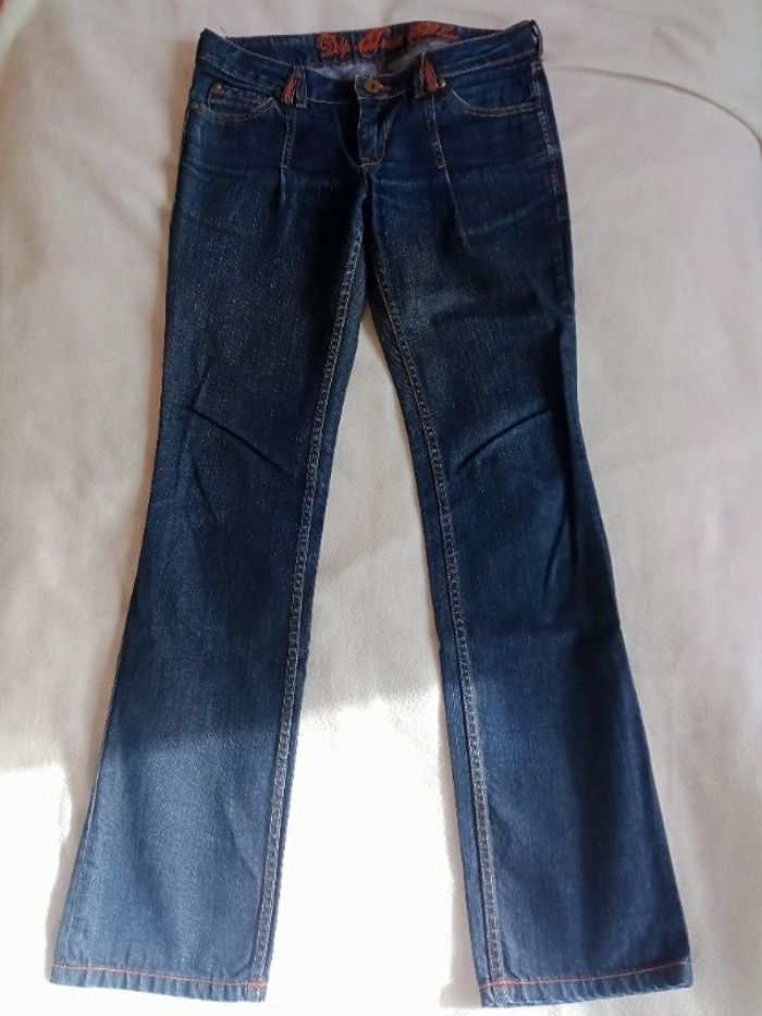 jean taille basse - très légères traces d'usure en bas des jambes à l'arrière (ça se voit à peine), sinon très bon état - largeur taille 40cm - taille 26 (il correspond à un 38)
