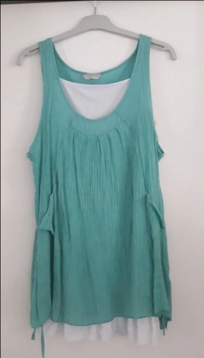 Tunique 2 en 1 composée d un top blanc et une tunique verte état correct #marisa44190femme