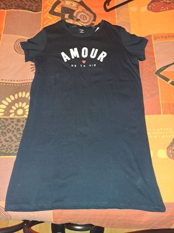 Chemise de nuit tee shirt manches courtes neuve fond marine hauteur 82 cm taille M marque kiabi #marisa44190femme