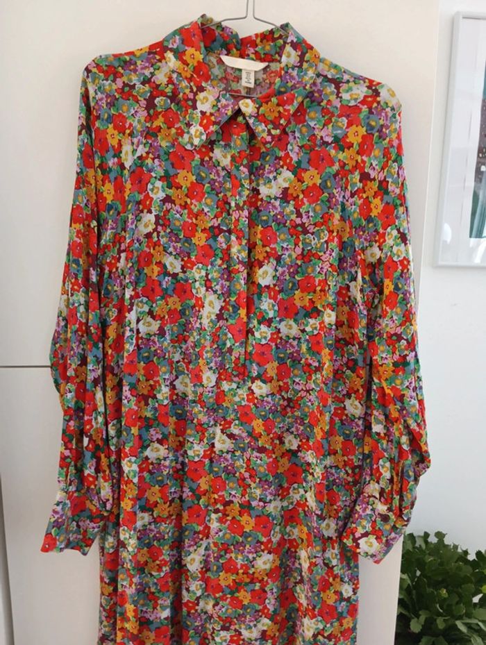 Robe longue à fleurs multicolores H&M taille S Manches longues Buste boutonné. 100% viscose Coupe ample Mesures Aisselles 53cm Longueur 128cm