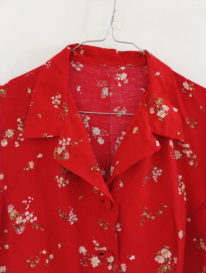 Robe vintage boutonnée rouge à fleurs - photo numéro 1