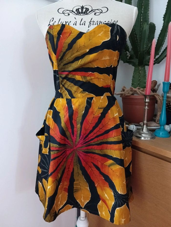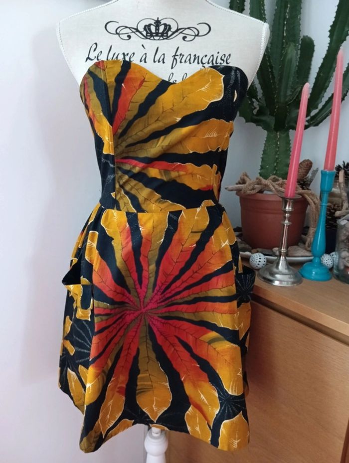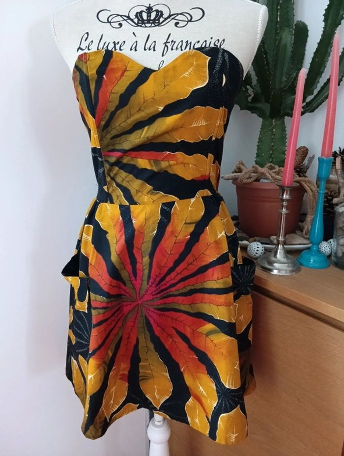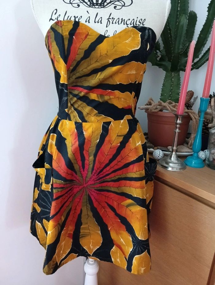 Robe bustier vintage en coton imprimé tropical - photo numéro 1