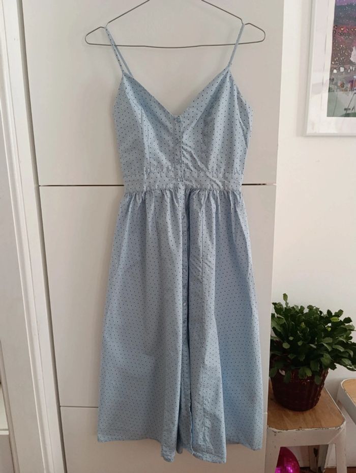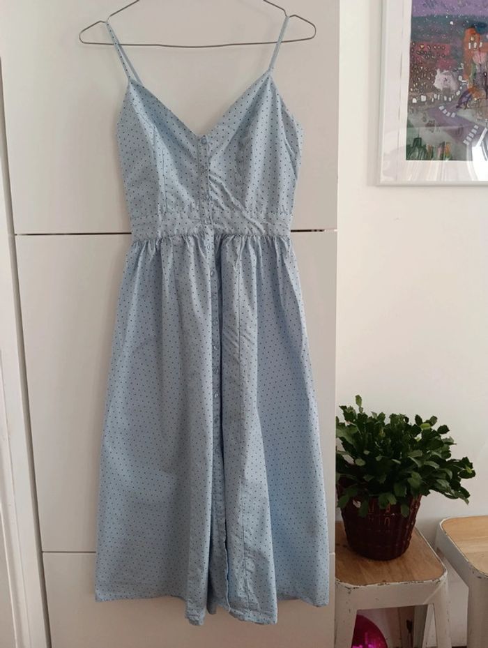 Robe bleu boutonnée pois noirs coton joli dos En coton H&M taille 34