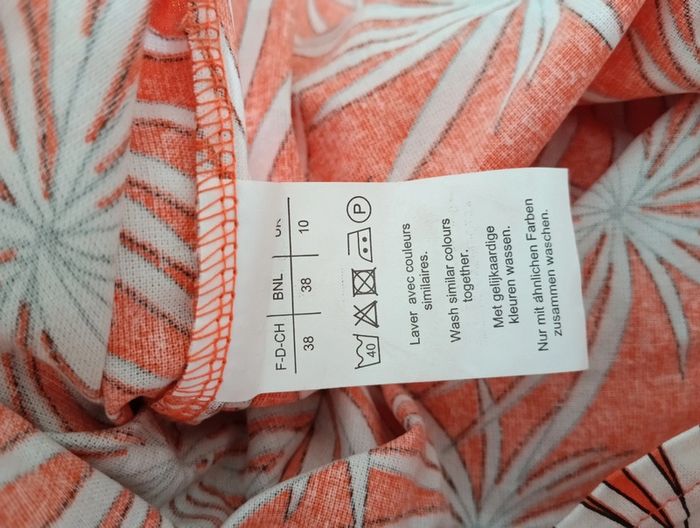 Robe droite en coton orange motifs fleurs blanches taille 38 - photo numéro 7