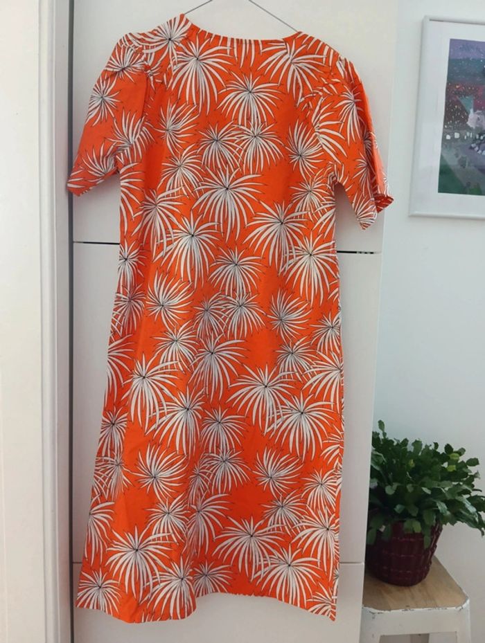 Robe droite en coton orange motifs fleurs blanches taille 38 - photo numéro 6