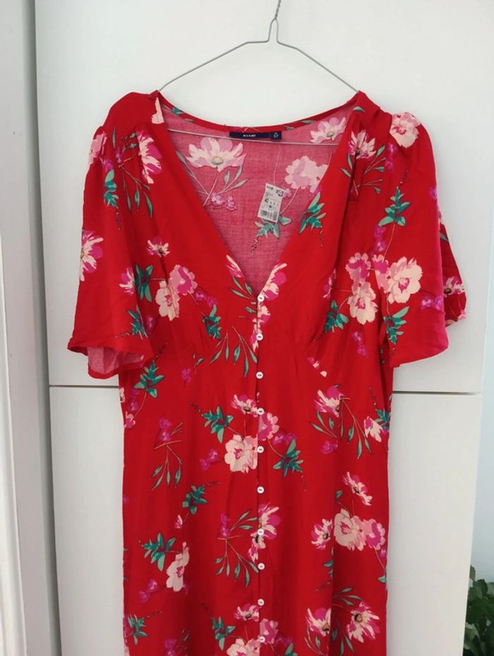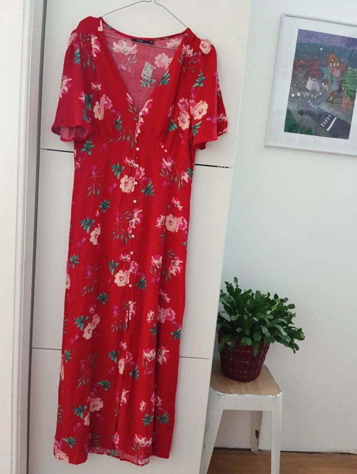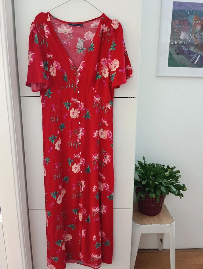 Robe boutonnée rouge motifs floraux taille 40 Kiabi