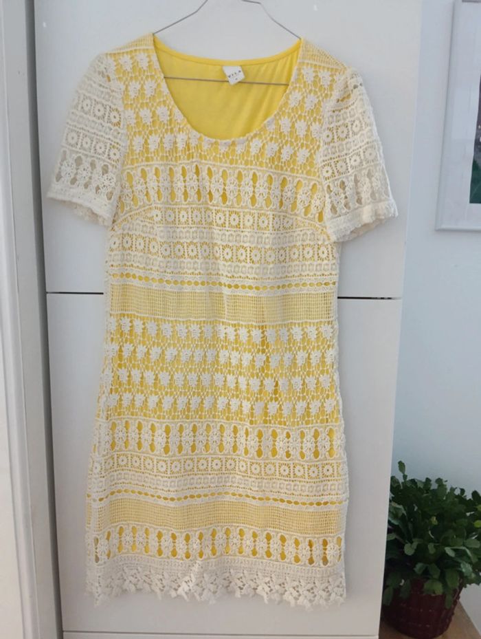 Robe fond jaune crochet écru taille M Vila - photo numéro 2