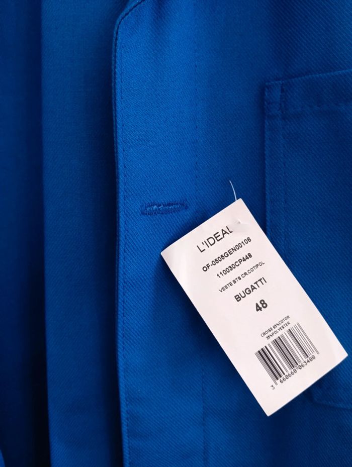Veste légère vintage bleu de travail bleu Bugatti neuve Taille 48 indiquée doit convenir pour 42 à confirmer avec les mesures selon l'effet souhaité Mesures Epaules 48cm Aisselles 59cm Longueur 71cm