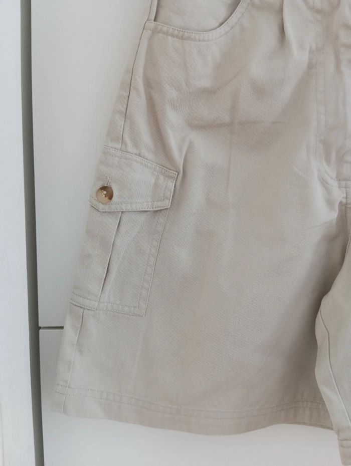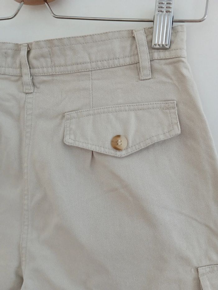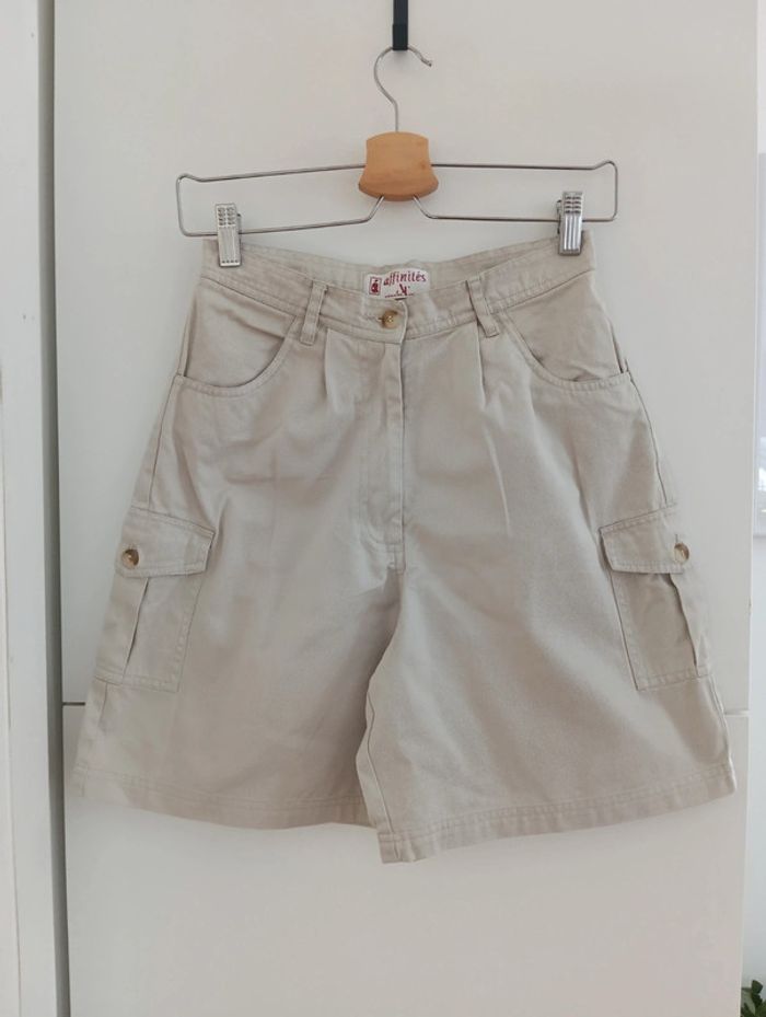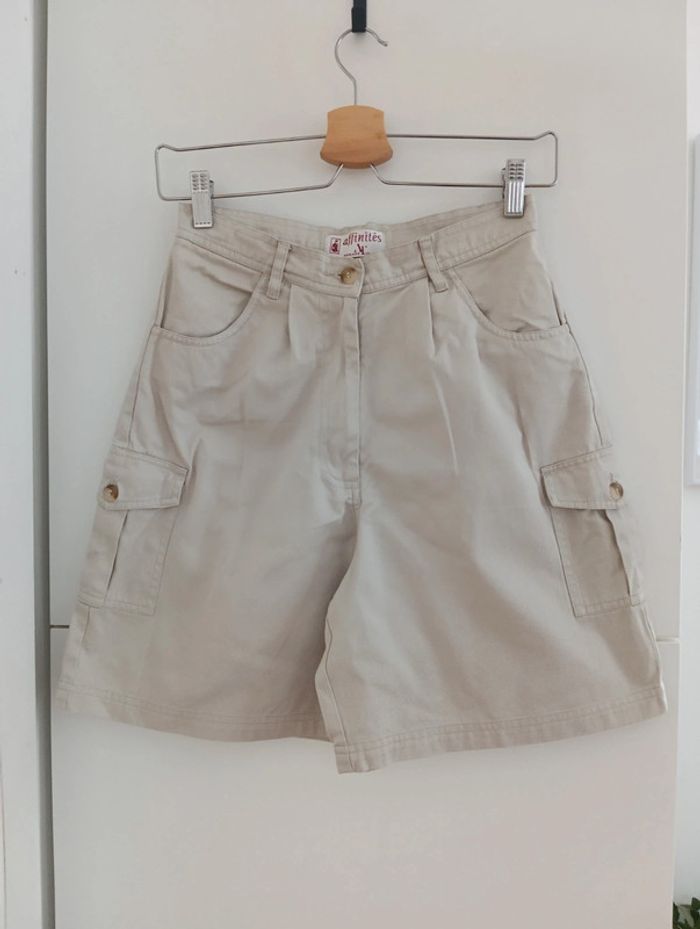 Short vintage beige en coton taille haute Poches cargo Taille 36 estimée à confirmer avec les mesures Taille 34cm Longueur 48cm Mesures de la taille à l'entrejambe 32cm