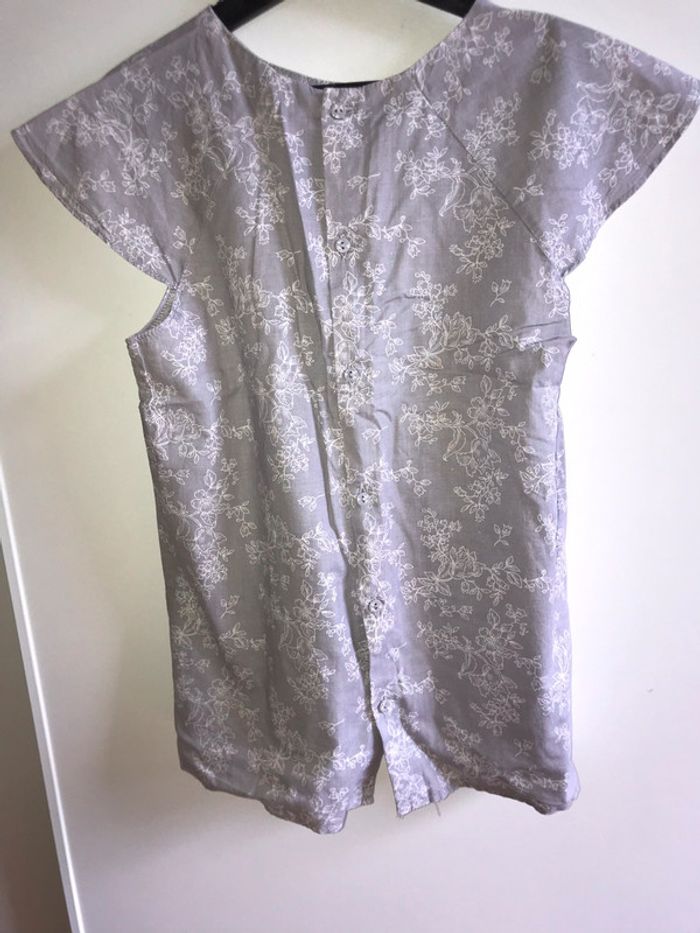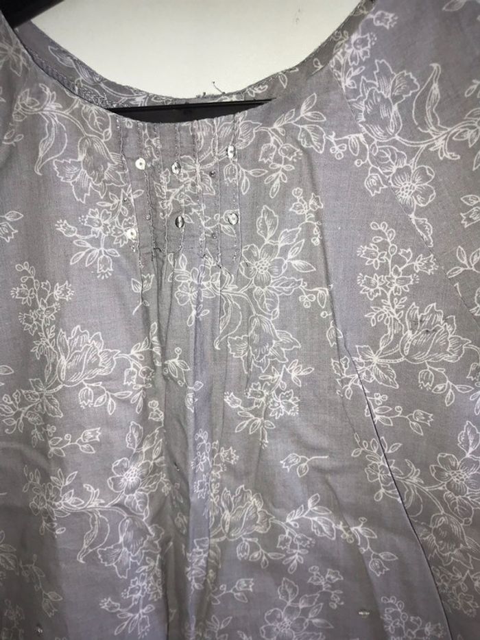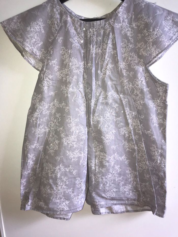 chemisier Sergent Major à manches courtes. marque Sergent Major en 10 ans. fleurs blanches sur fond gris et sequins entièrement boutonné au dos excellent état