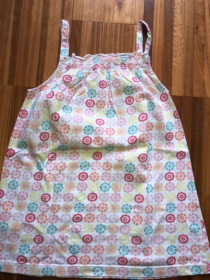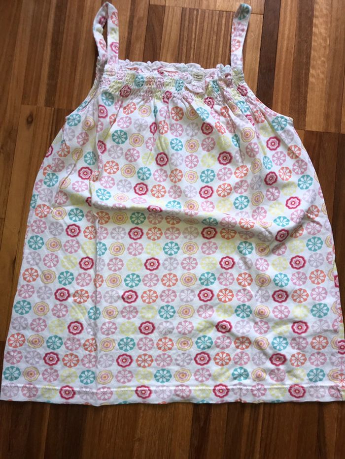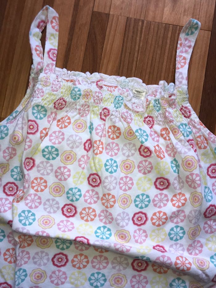 débardeur Okaidi en 10 ans fond blanc avec des fleurs rondes bon état