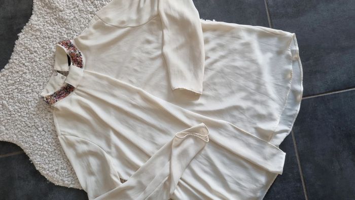 Blouse chemisier zara M 38 40  beige superbe - photo numéro 3