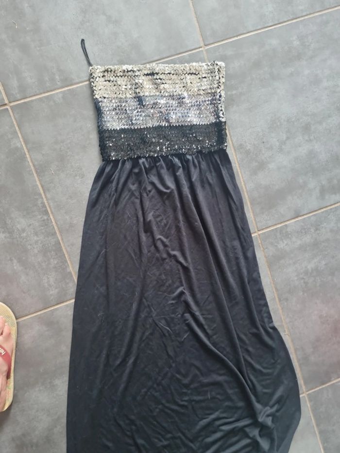 Robe noire longue Morgan , taille s ▪︎ hauteur totale 117 cm ▪︎ parfait état ▪︎ bustier elastanne et bon soutien poitrine sans piquer Envoi possible à 0.99 en mondial relais en France , me demander ... 😉