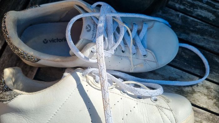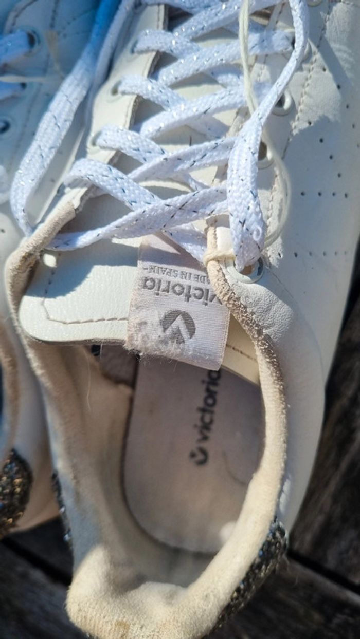 Baskets victoria Blanche en cuir Taille 36 , bien portée, petit prix 🥰 Envoi possible à 0.99 en mondial relais en France 😉