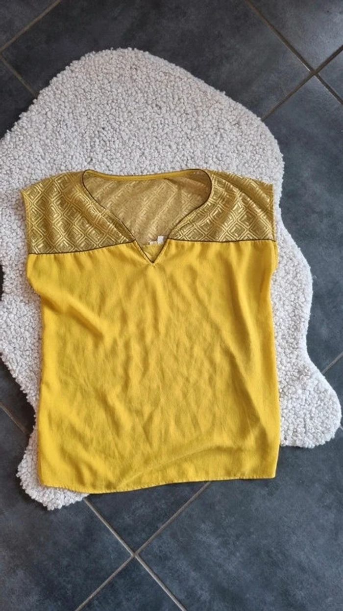 Tee shirt grain de malice jaune M manche épaules dentelles - photo numéro 1