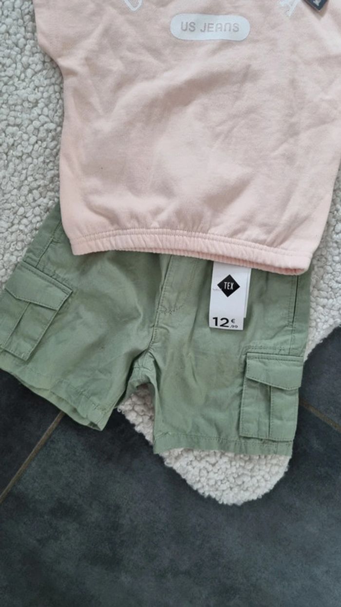 Ensemble haut t shirt rose et short kaki tout neuf - photo numéro 2