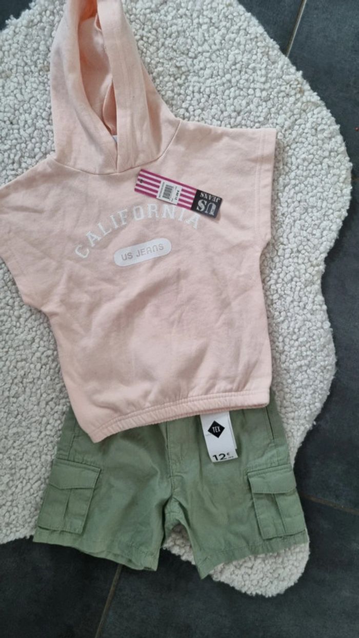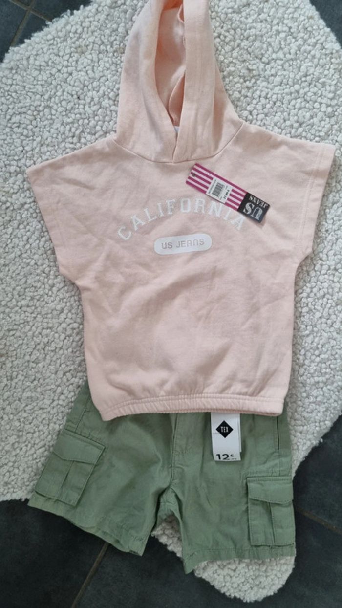 Ensemble haut t shirt rose et short kaki tout neuf