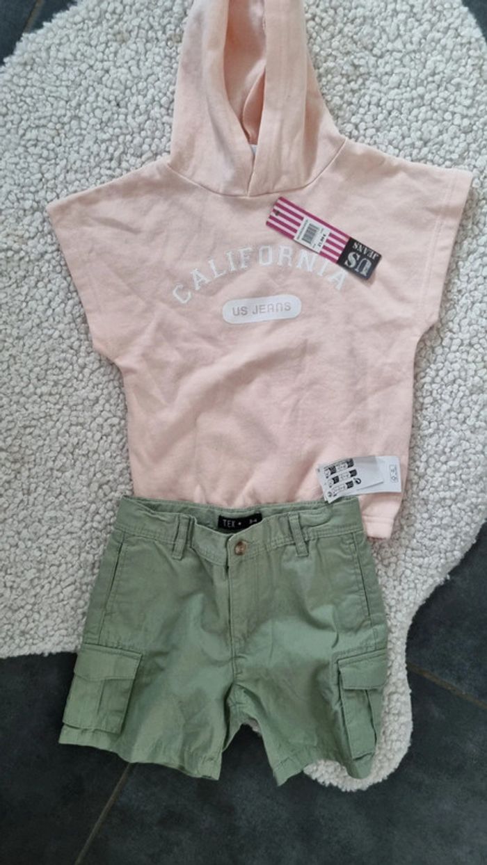 Ensemble haut t shirt rose et short kaki tout neuf - photo numéro 1