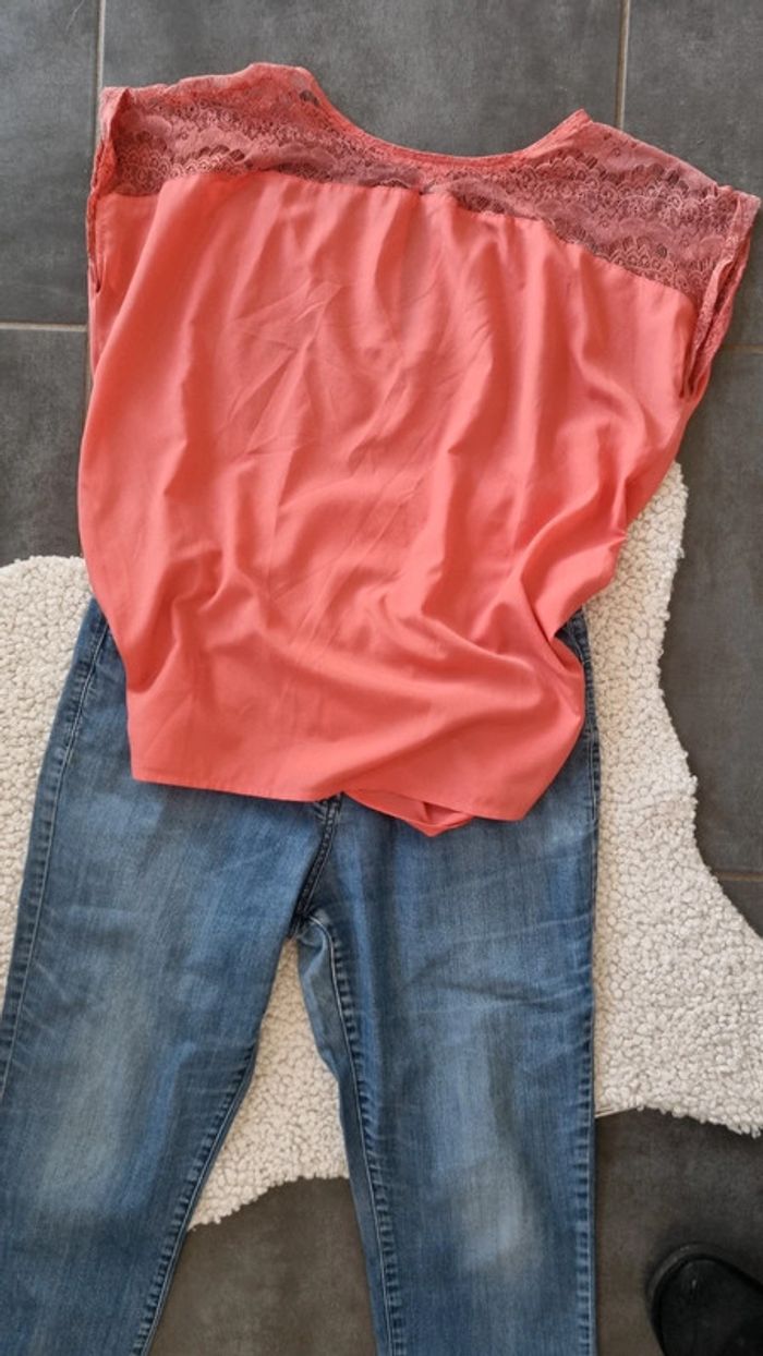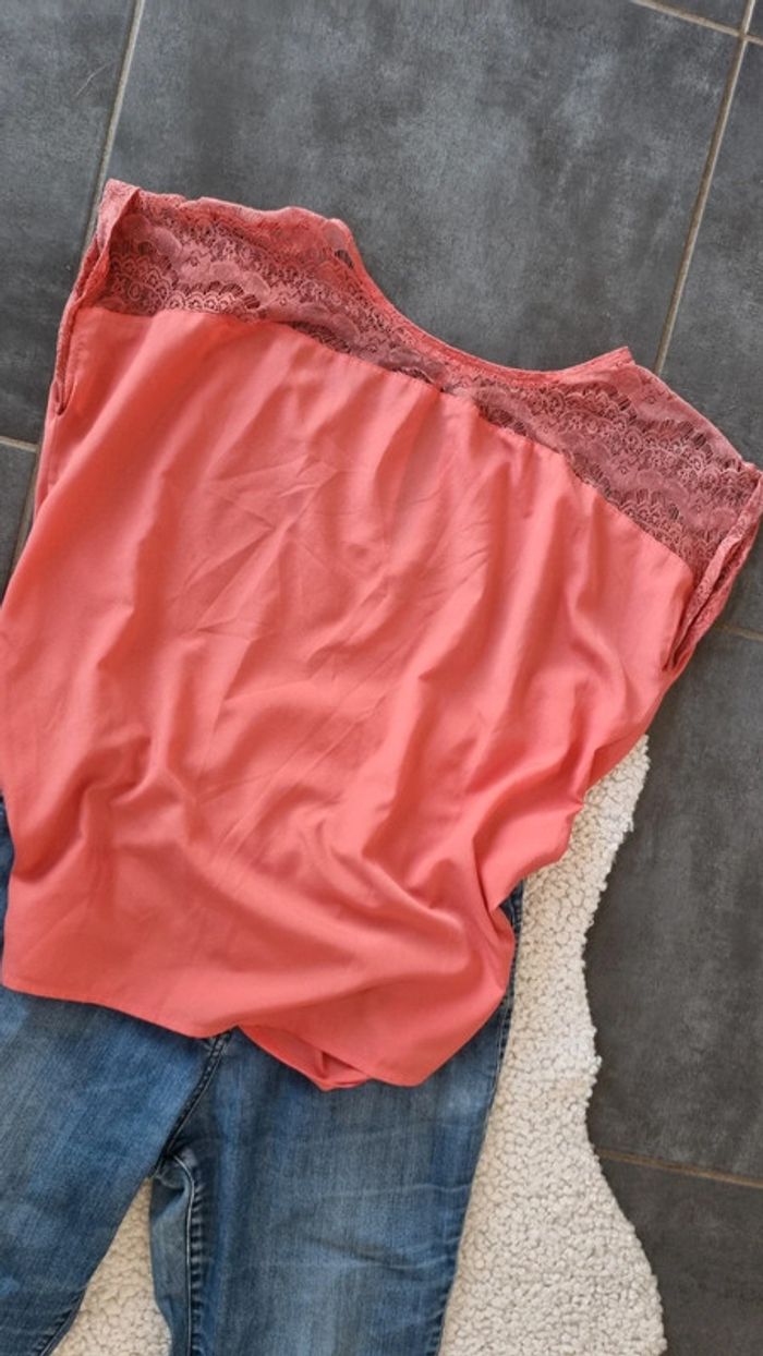 Haut fluide dentelle haut corail saumon parfait 44 XXL - photo numéro 1