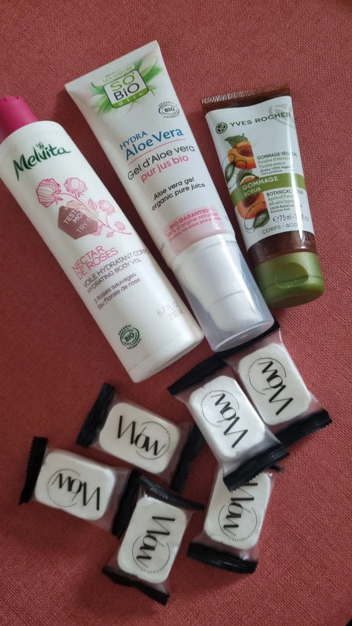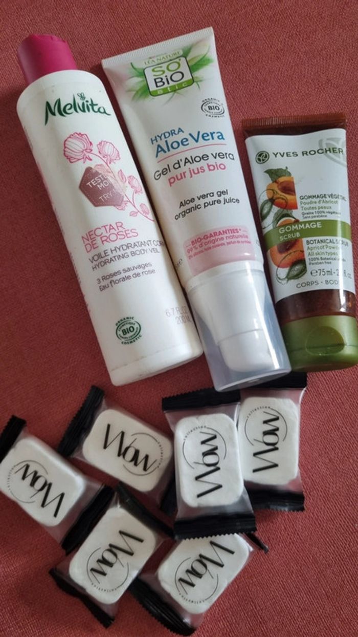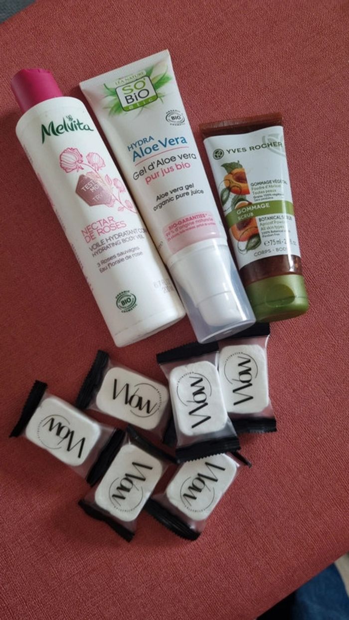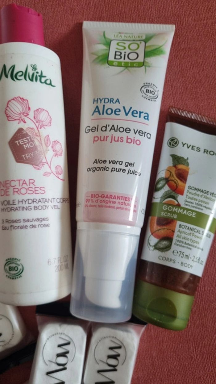 3 produit de beauté Yves Rocher  So bio  Melvita neuf et éponges compressées  le tout neuf