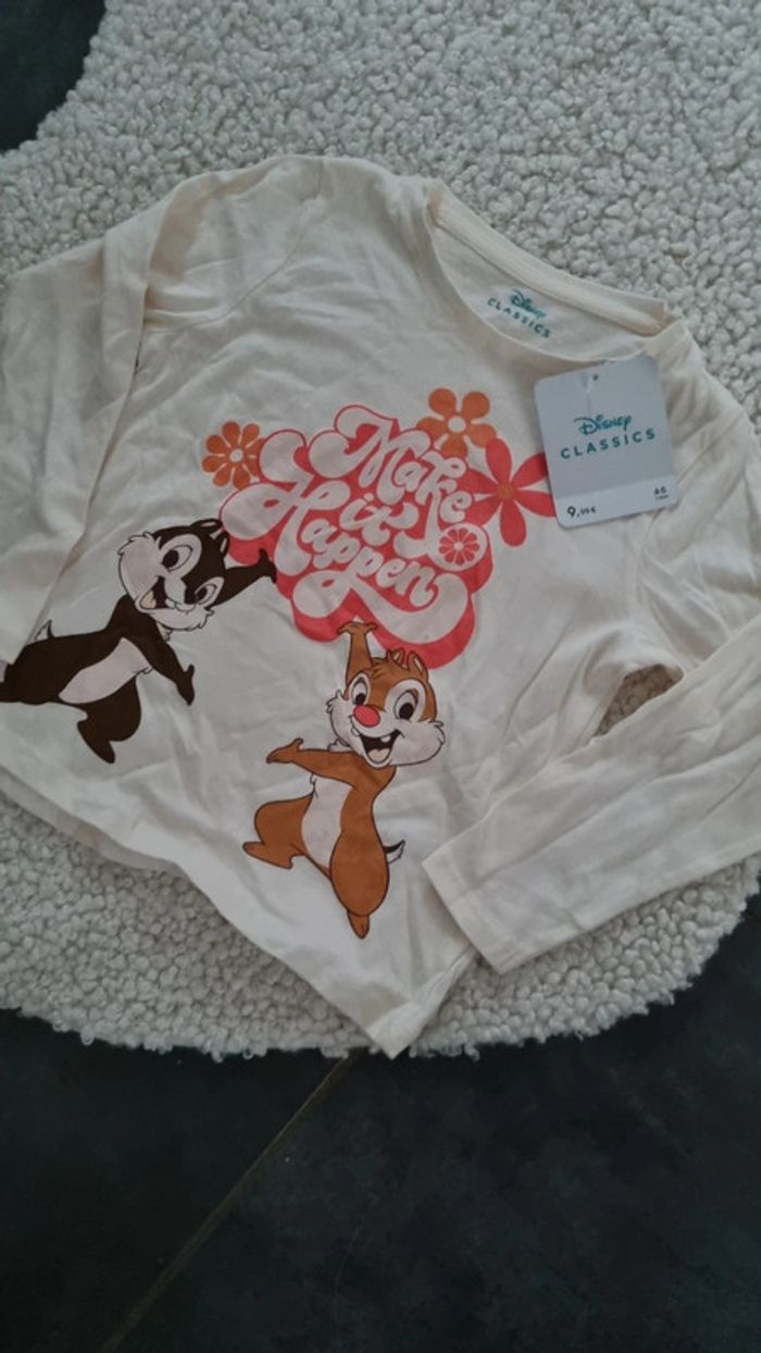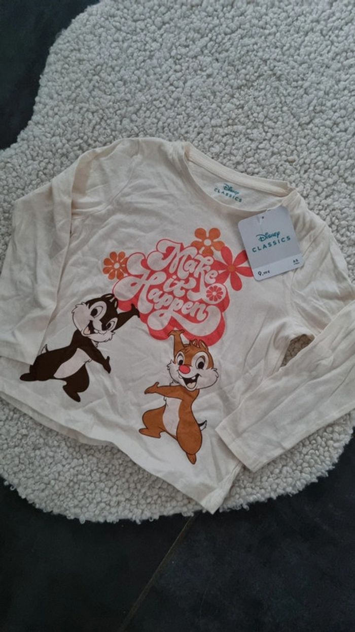 Haut tee shirt manches longues beige disney neuf tic et tac 4 / 5 as - photo numéro 3