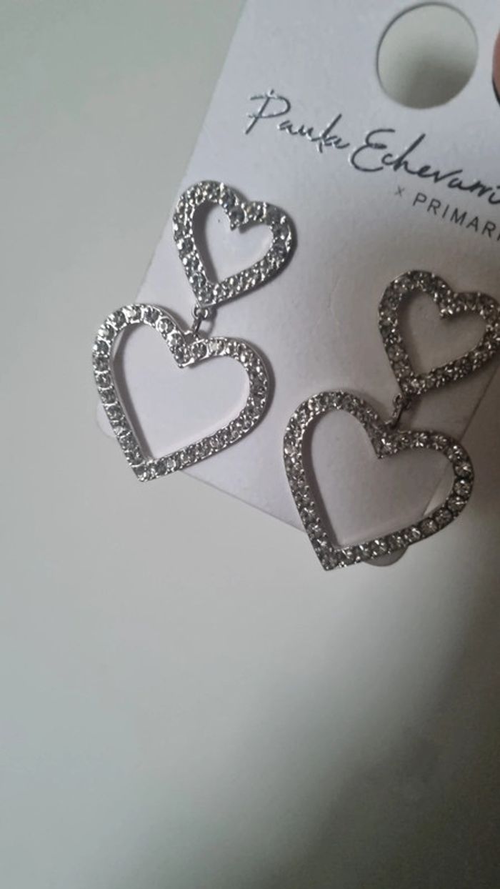 Boucles d'oreilles neuves cœur argenté diamant neuf - photo numéro 3
