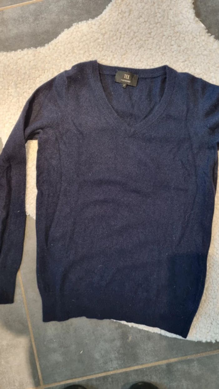 Pull col V 100 % cachemire S 36 sympa marine - photo numéro 2