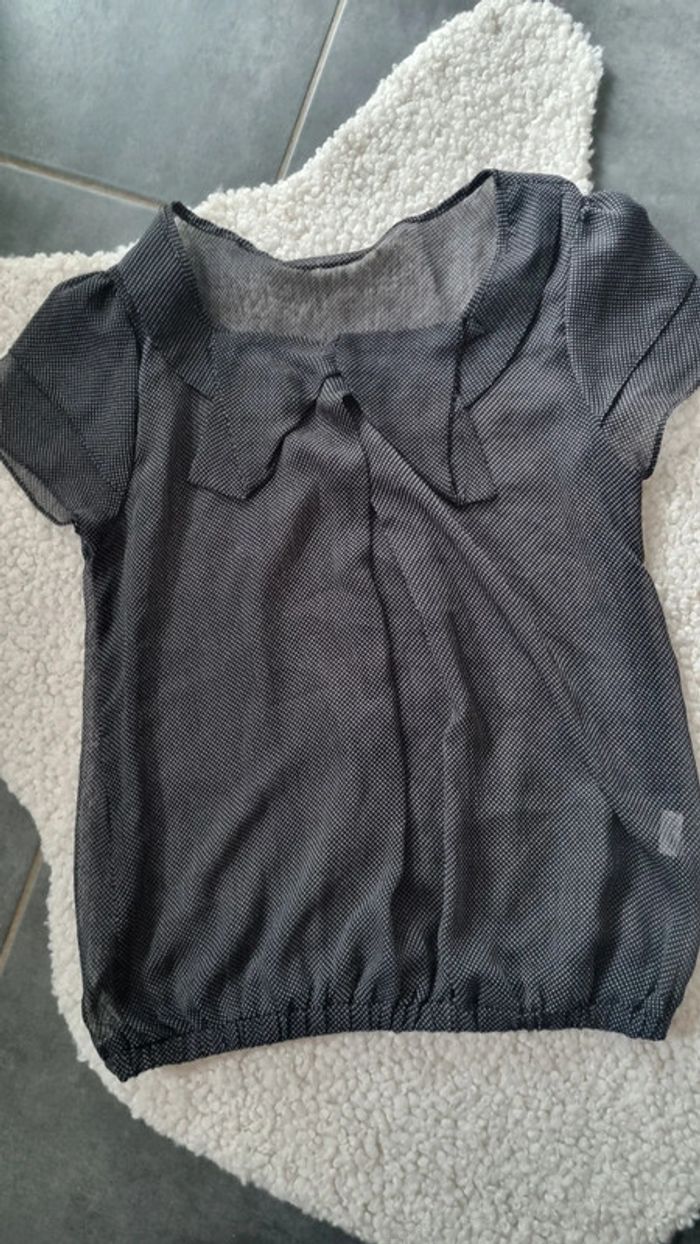 Blouse noire légèrement transparente petit pois L 40 - photo numéro 1