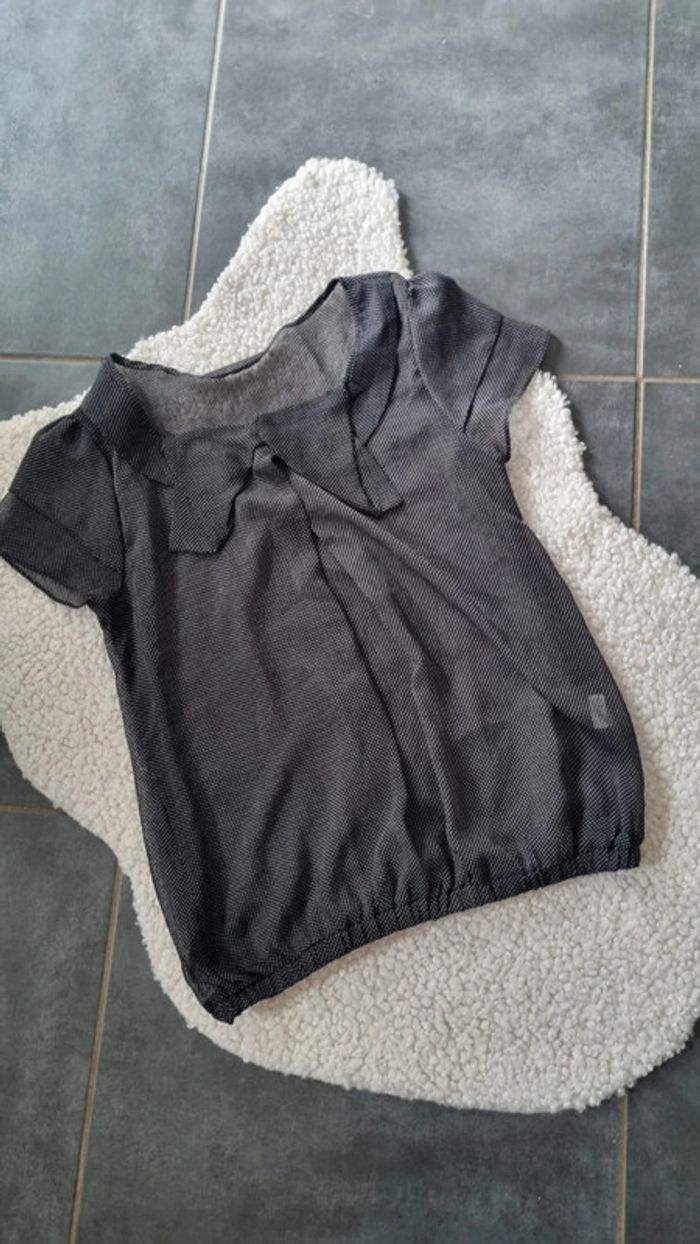 Blouse noire légèrement transparente petit pois L 40 - photo numéro 3
