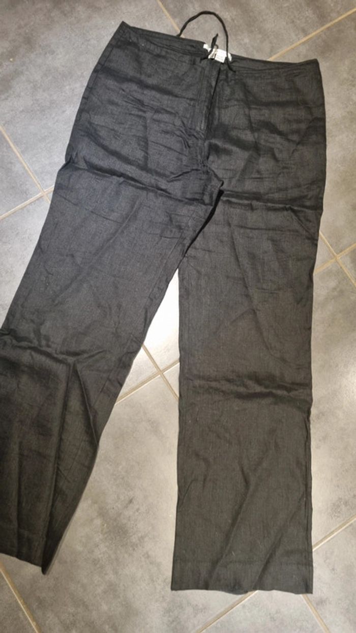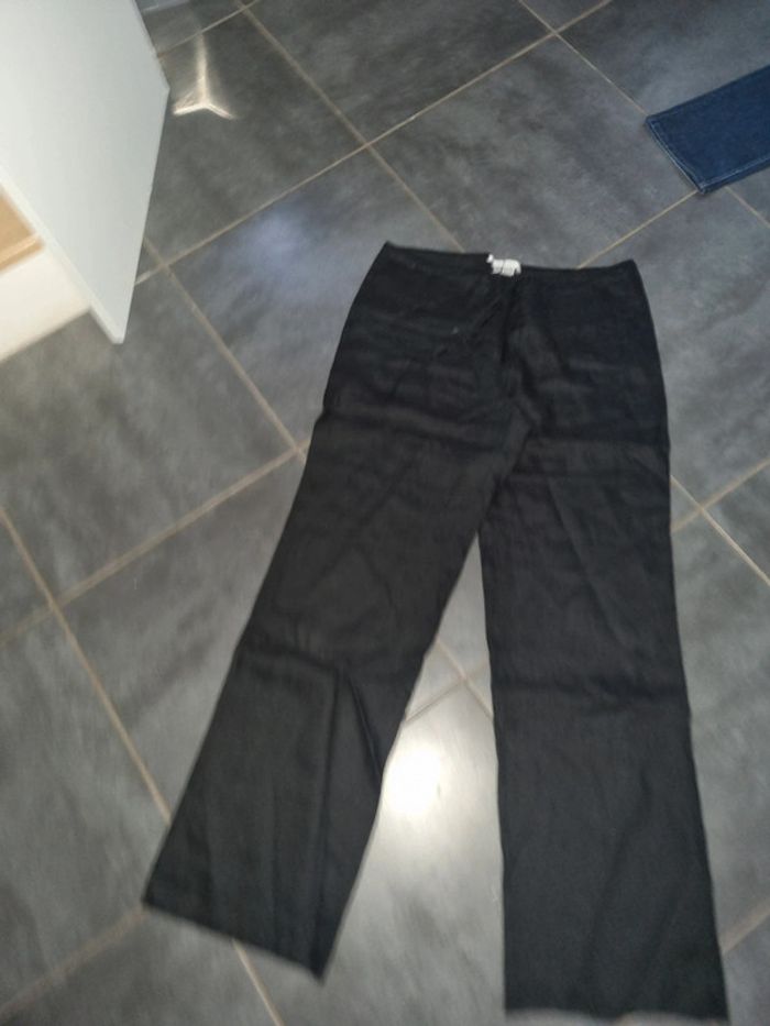 Pantalon lin neuf ZARA XL 42  noir long et large - photo numéro 2
