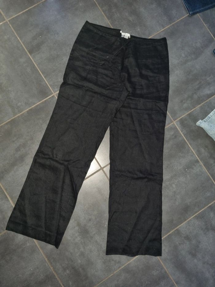 Pantalon lin neuf ZARA XL 42  noir long et large - photo numéro 3
